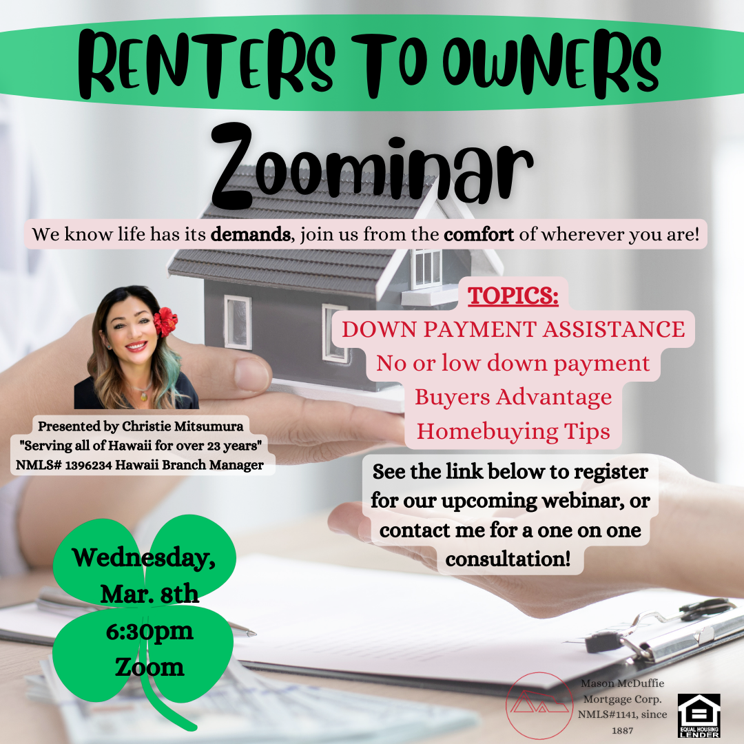 Join me as I share information about the process and programs with First Time Homebuyers.