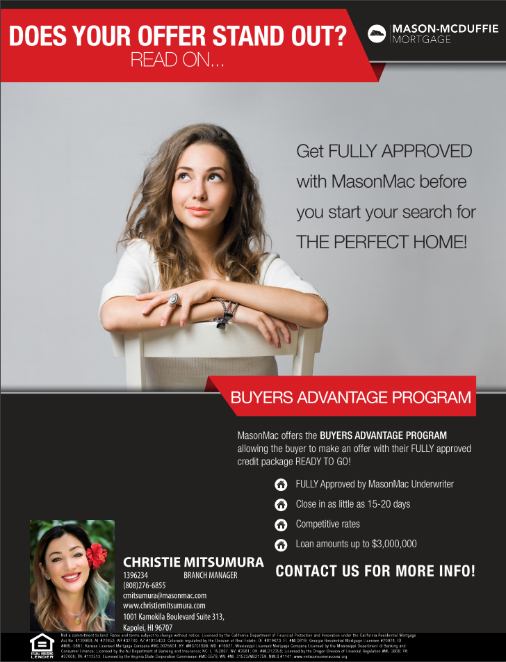 MasonMac offers the BUYERS ADVANTAGE PROGRAM allowing the buyer to make an offer with their FULLY approved credit package READY TO GO!